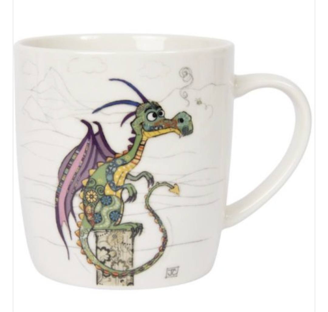 Duncan the dragon is a friendly chap, he has purple wings and a floral patterned body, he's bound to make hot drinks even more enjoyable.