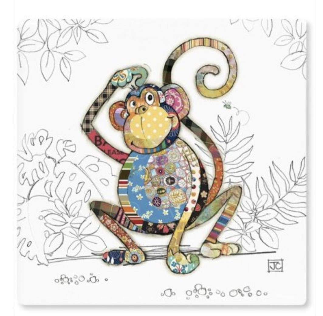 A ceramic coaster with Monty Monkey by Bug Art decal.