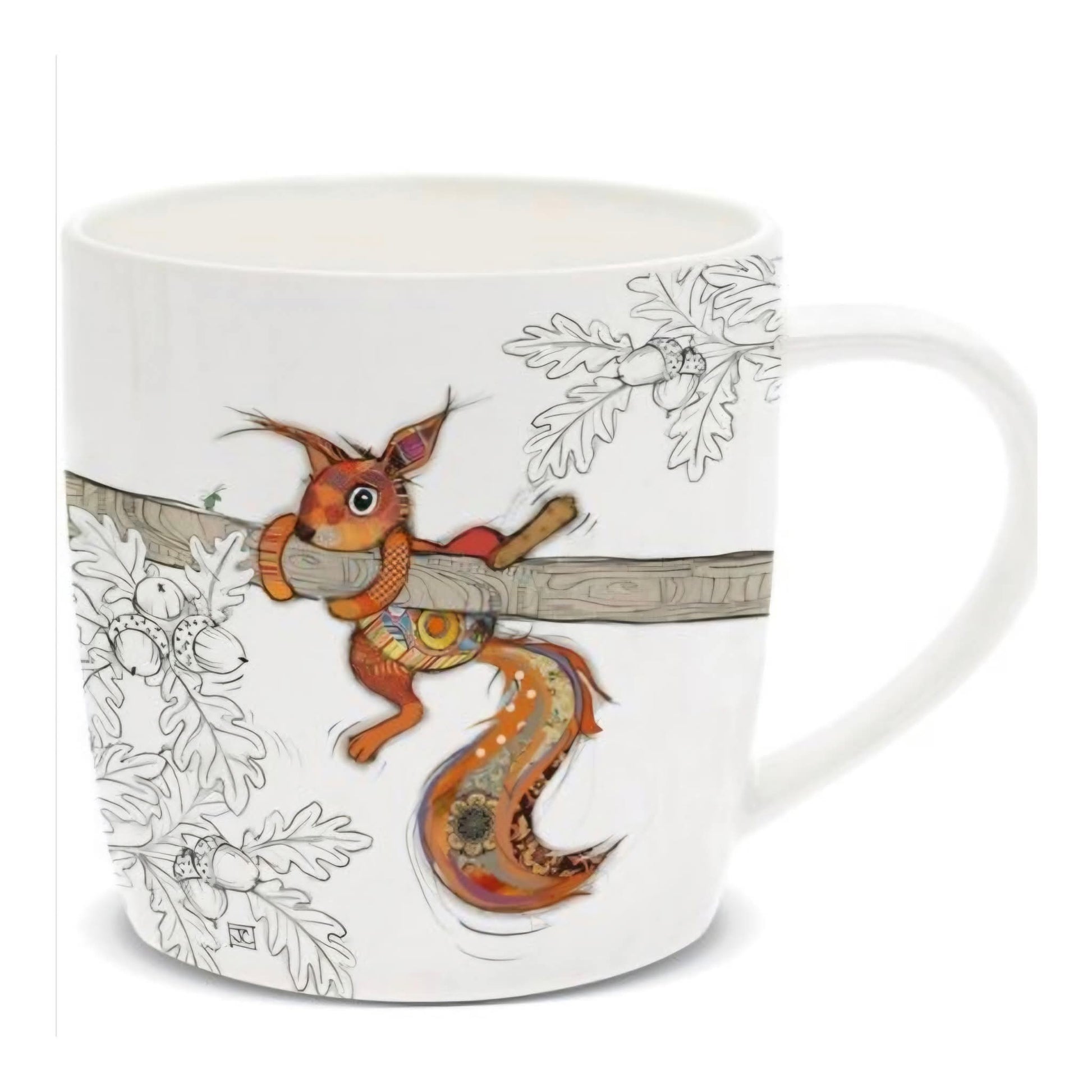 A fine china mug with artist Bug Art's colourful Sammy Squirrel.