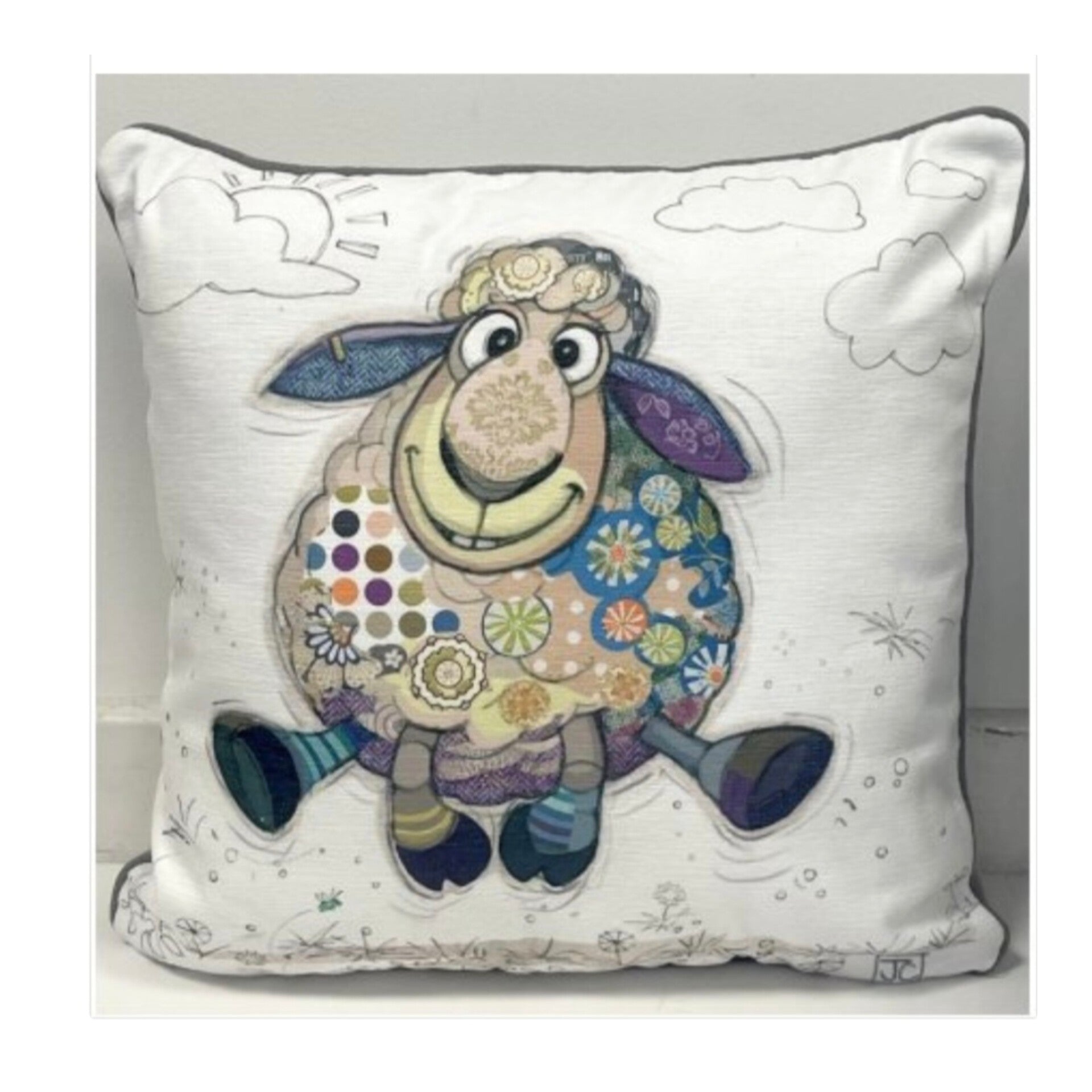 This cute cushion features a delightful design of the lovable Sasha sheep from the renowned Bug Art brand.