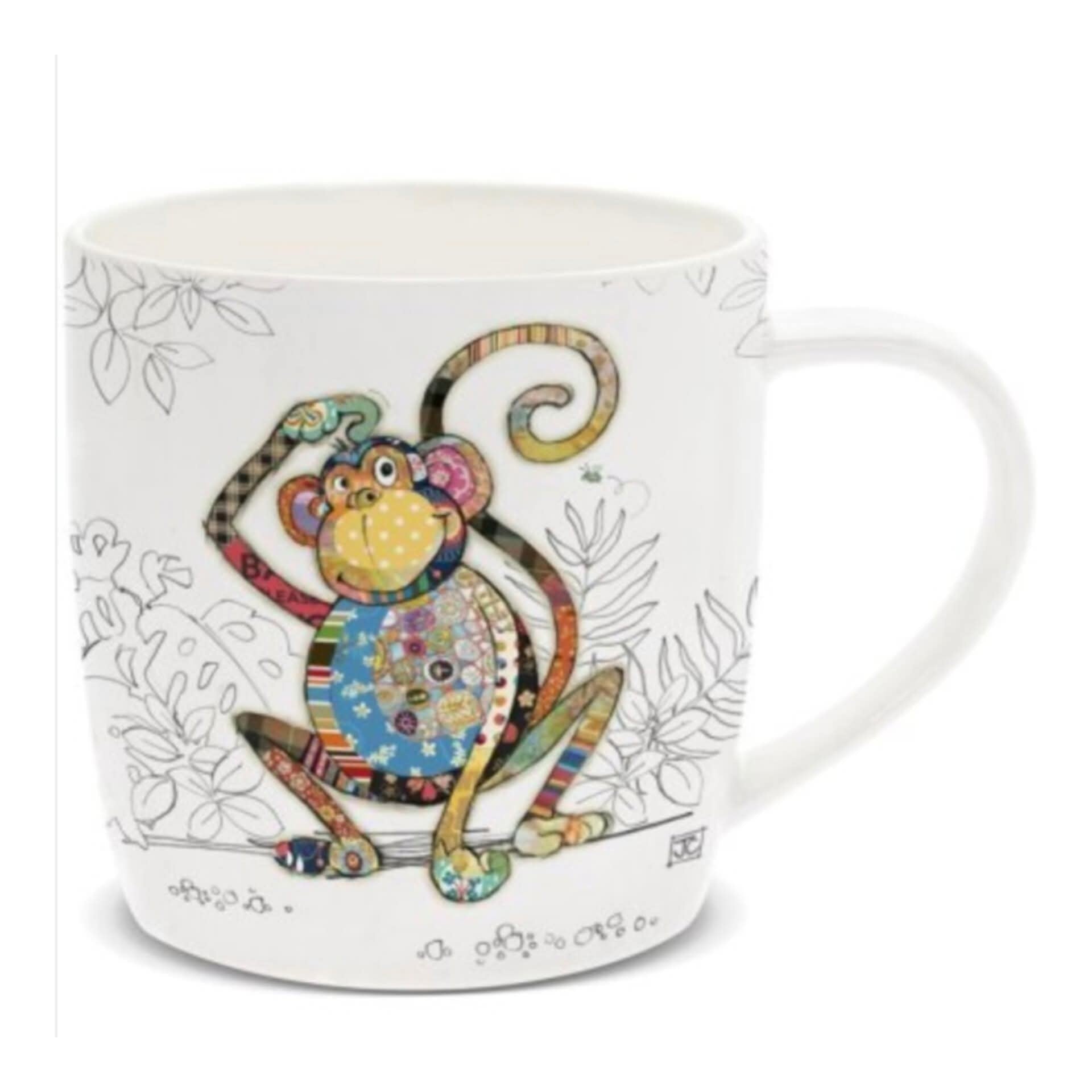 A fine china mug with artist Bug Art's colourful Monty Monkey.