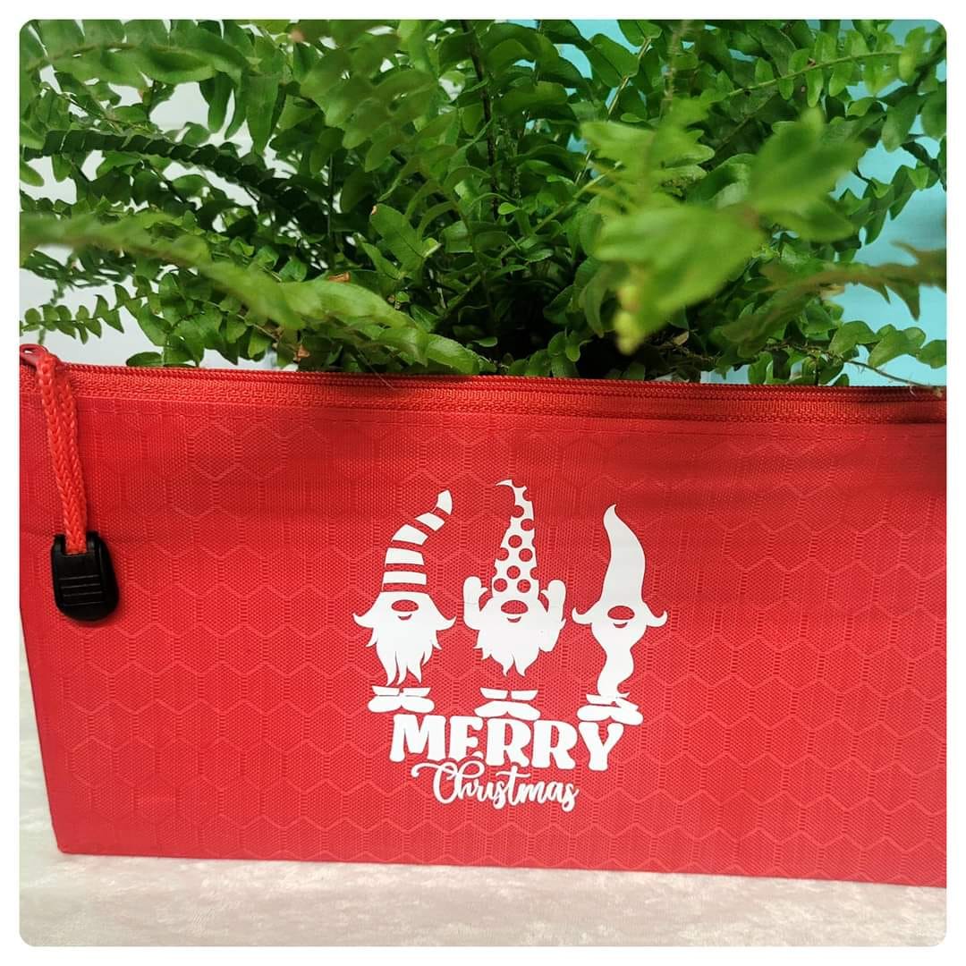 Merry Christmas Red Pencil case with white festive gonks design
