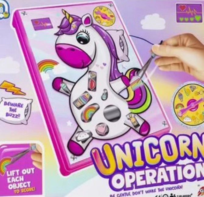 Take turns to spin the game arrow to indicate which part of the body you should attempt to take out! If you successfully take out the item without the Unicorn shaking, then you gain a score and keep the item.